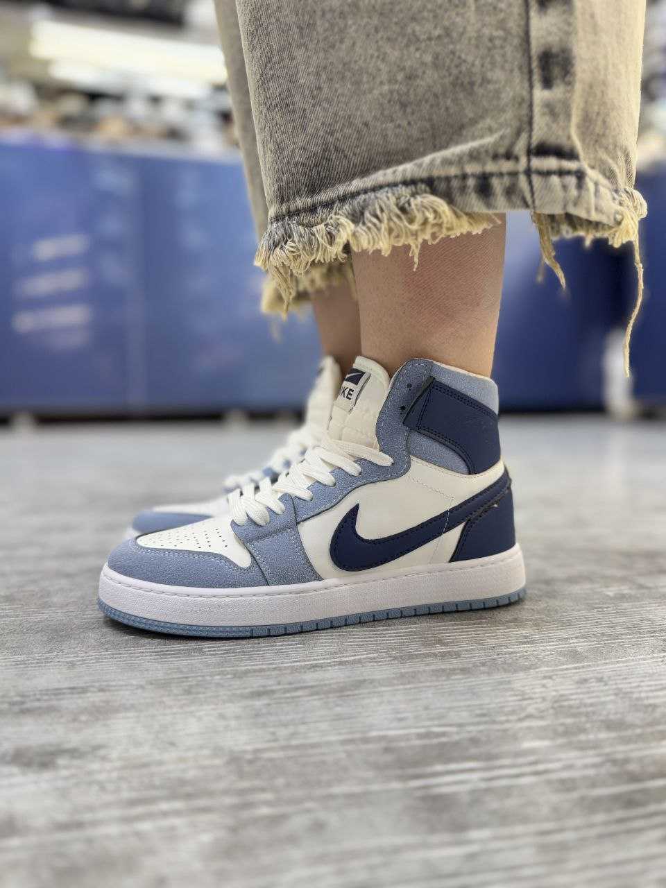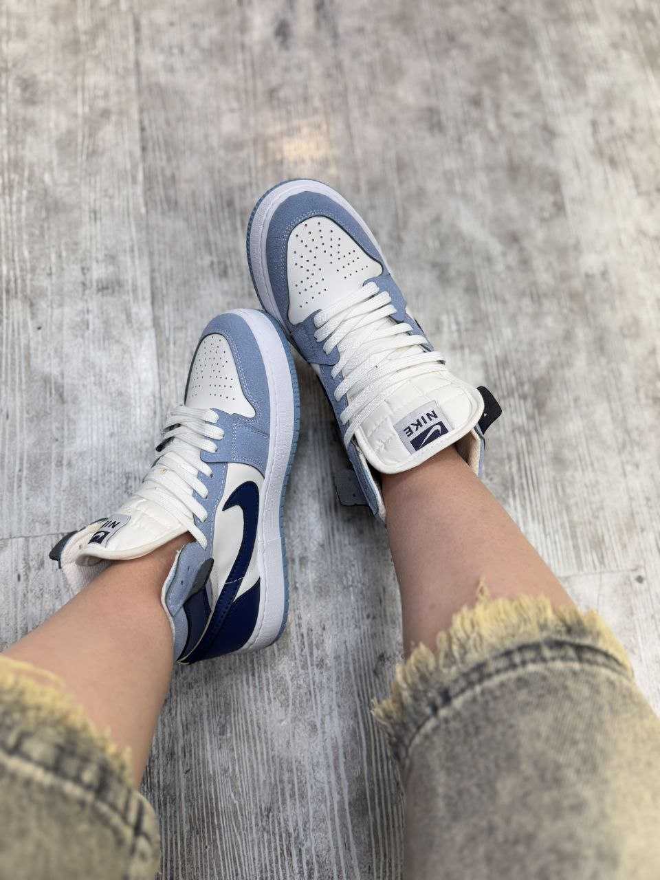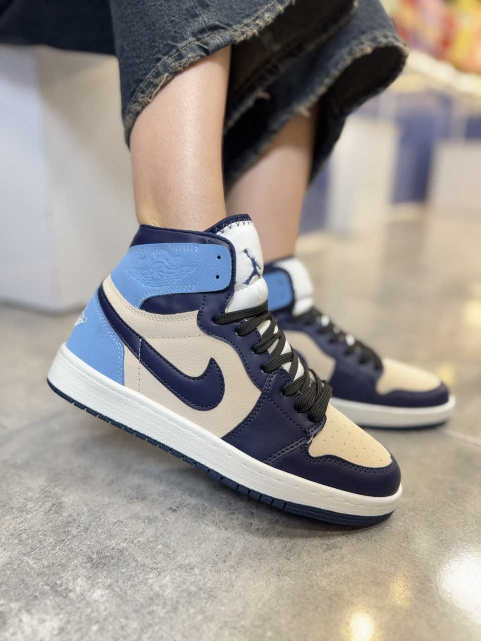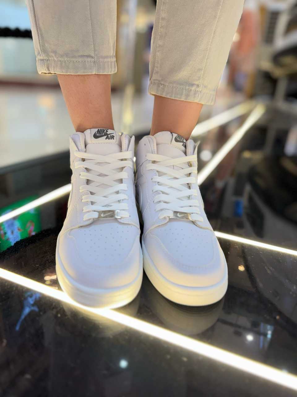 ساده‌ ترین و محبوب‌ ترین شیوه استفاده از جردن ۱ ساق بلند، ترکیب آن با شلوار جین اسکینی یا مام‌ استایل و یک تیشرت ساده است. این ترکیب، استایلی جوان‌ پسند و کلاسیک خلق می‌ کند . می‌ توانید با یک هودی یا سویشرت، آن را برای روزهای خنک‌ تر تکمیل کنید.
