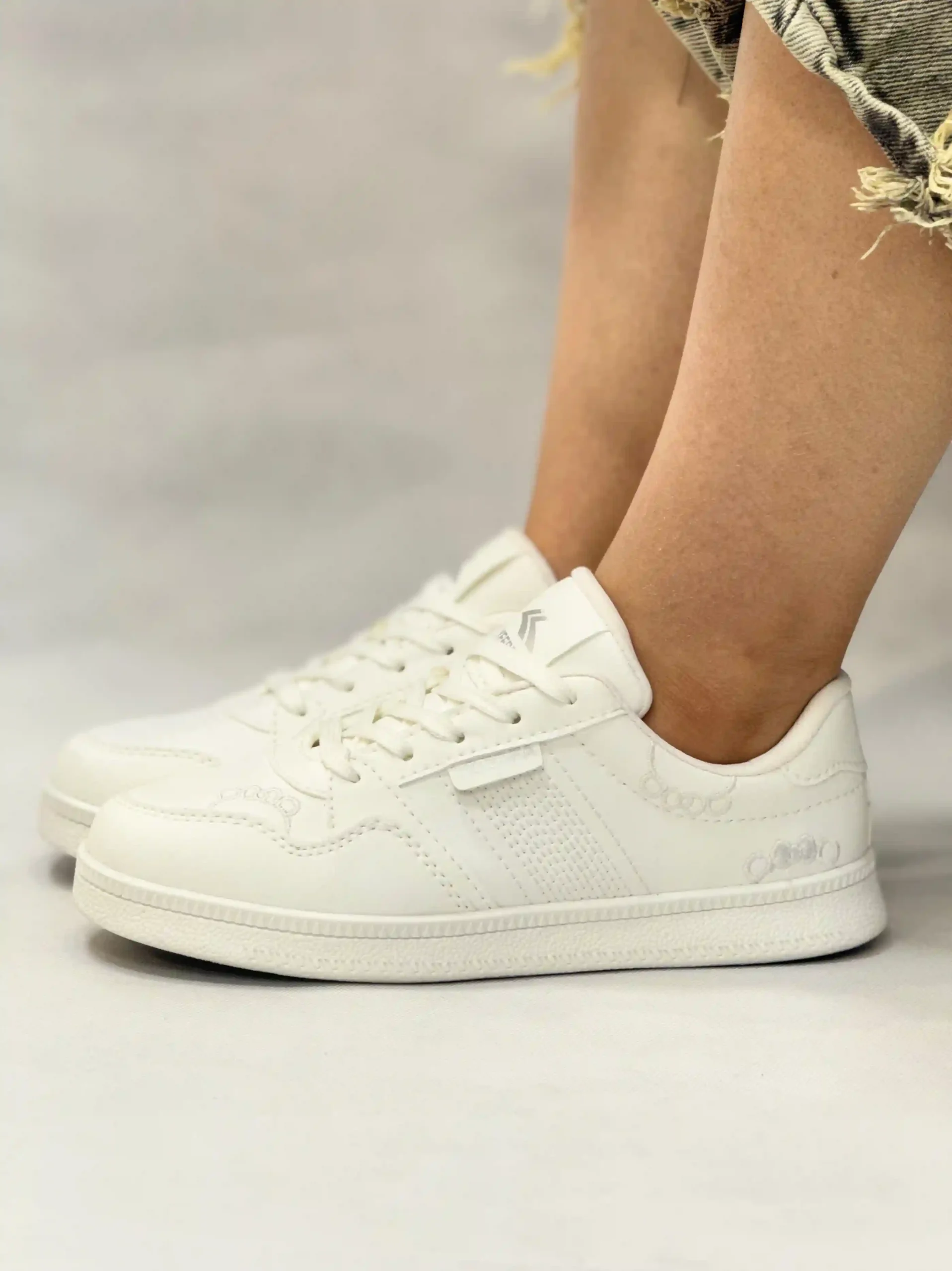 برای محیط های کاری نیمه رسمی یا قرارهای کاری، می توانید این کفش را با یک شلوار کتانی راسته به رنگ بژ یا خاکستری، یک بلوز سیلک و یک بلزر ساده ست کنید. سفیدی کفش، استایل را روشن، هوشمند و بسیار شیک جلوه می دهد. این کفش یکی از جدیدترین مدل کفش هایی است که مرز بین اسپرت و رسمی را به زیبایی محو کرده است.